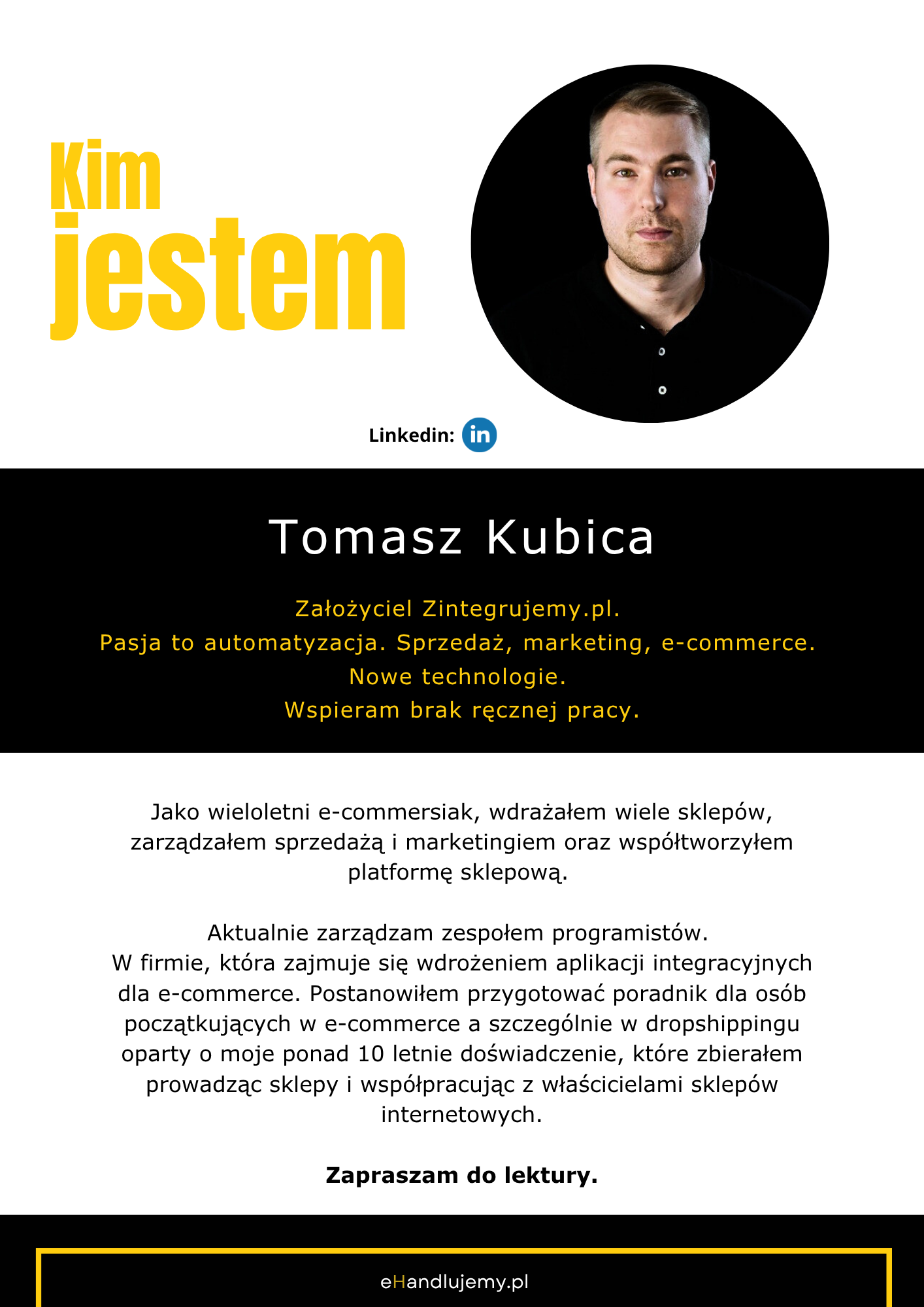 W firmie, która zajmuje się wdrożeniem aplikacji integracyjnych dla e-commerce. Postanowiłem przygotować poradnik dla osób początkujących w e-commerce a szczególnie w dropshippingu oparty o moje ponad 10 letnie doświadczenie, które zbierałem prowadząc sklepy i współpracując z właścicielami sklepów internetowych.