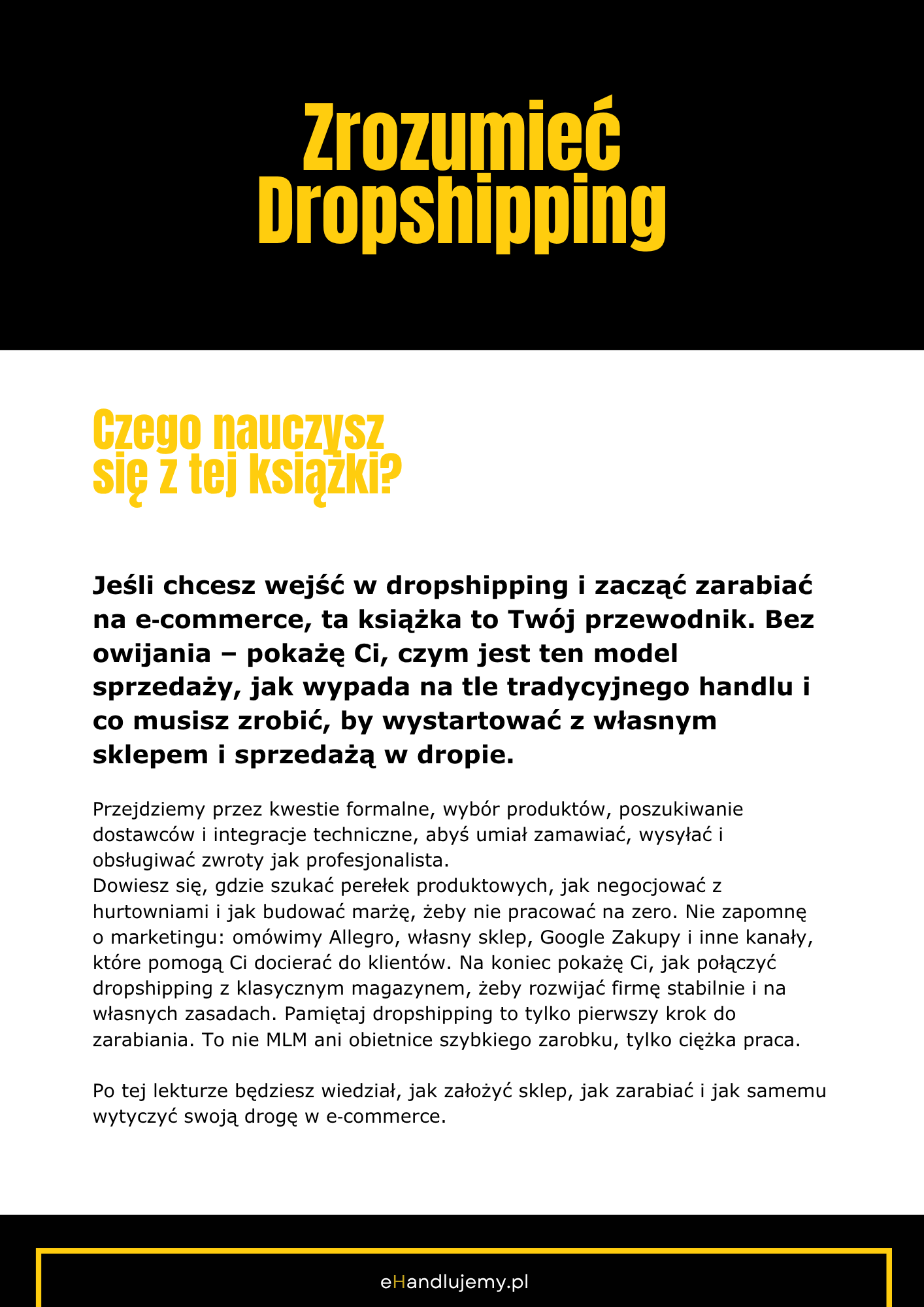 „Zrozumieć Dropshipping” to książka, której sam szukałem, gdy zaczynałem.