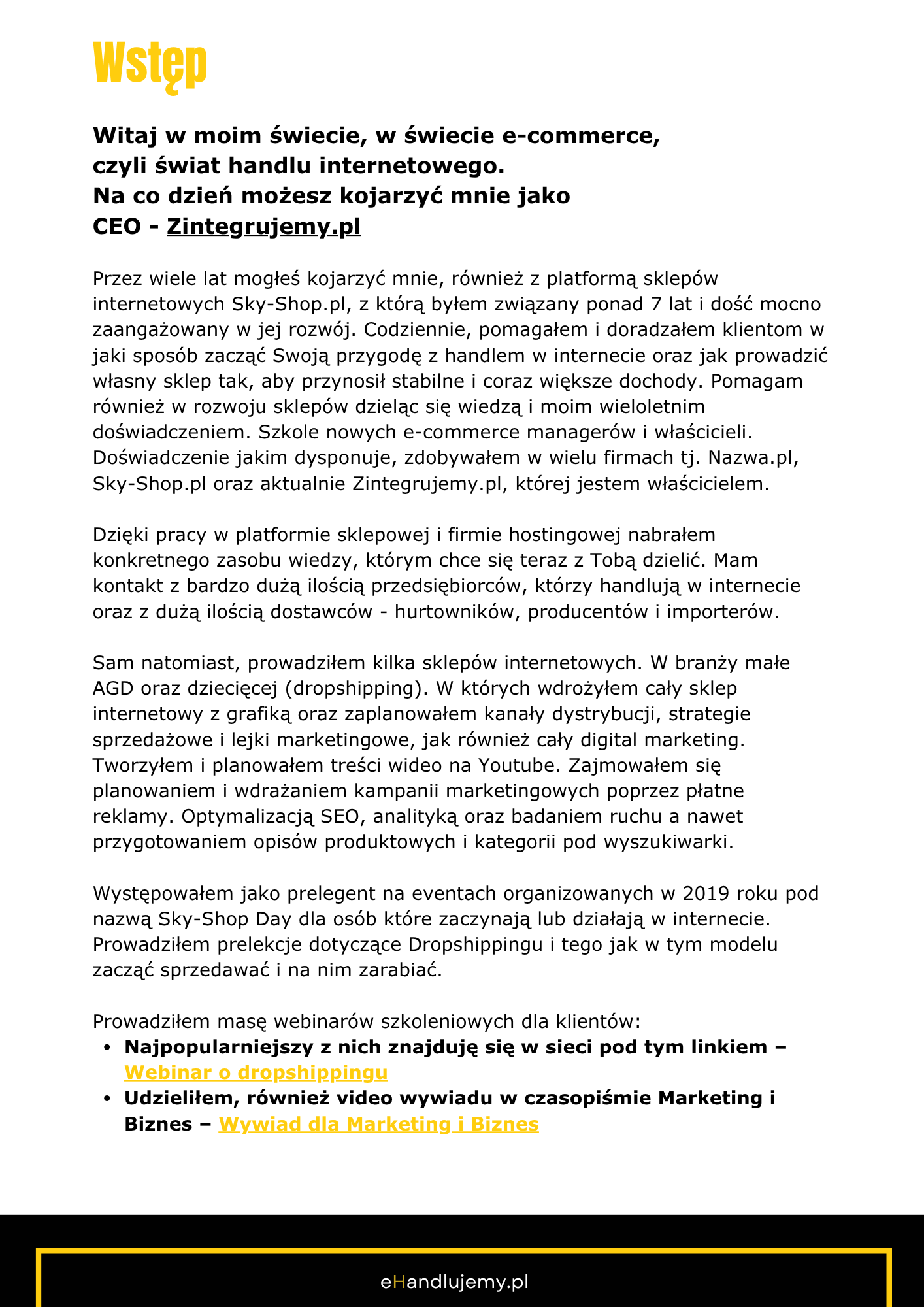 Ten e-book to efekt ponad 10 lat mojej pracy w e-commerce – od tworzenia pierwszego sklepu, przez współpracę z hurtowniami, po integracje systemów dla największych firm w Polsce.